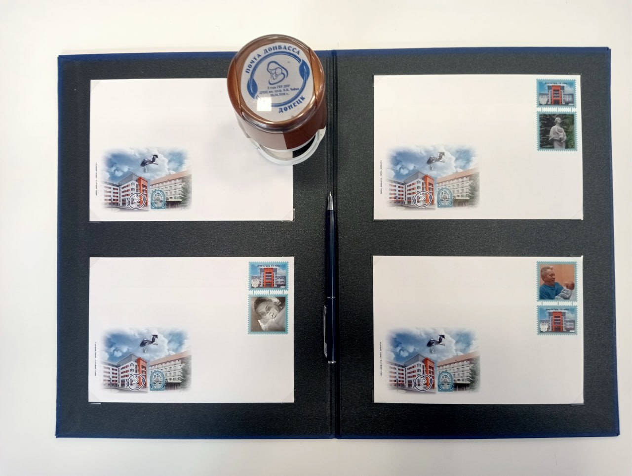 «Почта Донбасса» не в первый раз выпускает филателистические наборы, посвященные «Донецкому республиканскому перинатальному центру имени профессора Владимира Кирилловича Чайки» (ранее Донецкий республиканский центр охраны материнства и детства). Впервые это произошло летом 2019 года, когда центр носил свое прежнее название.