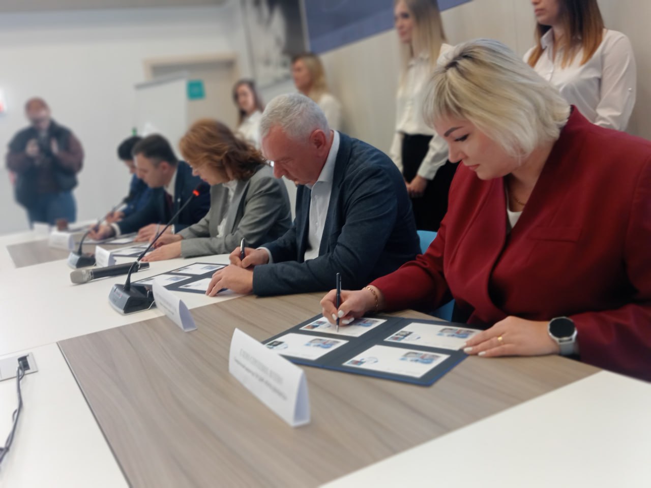 В церемонии гашения почтового блока приняли участие: