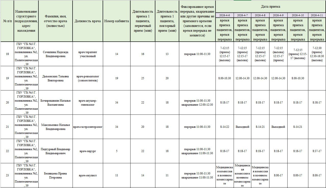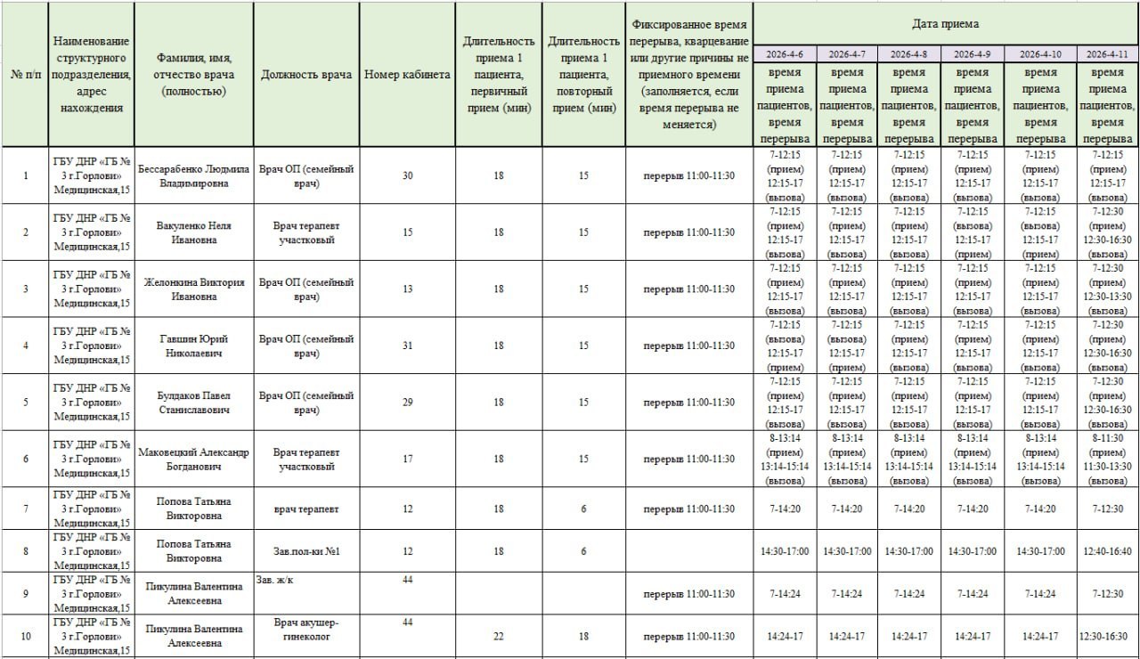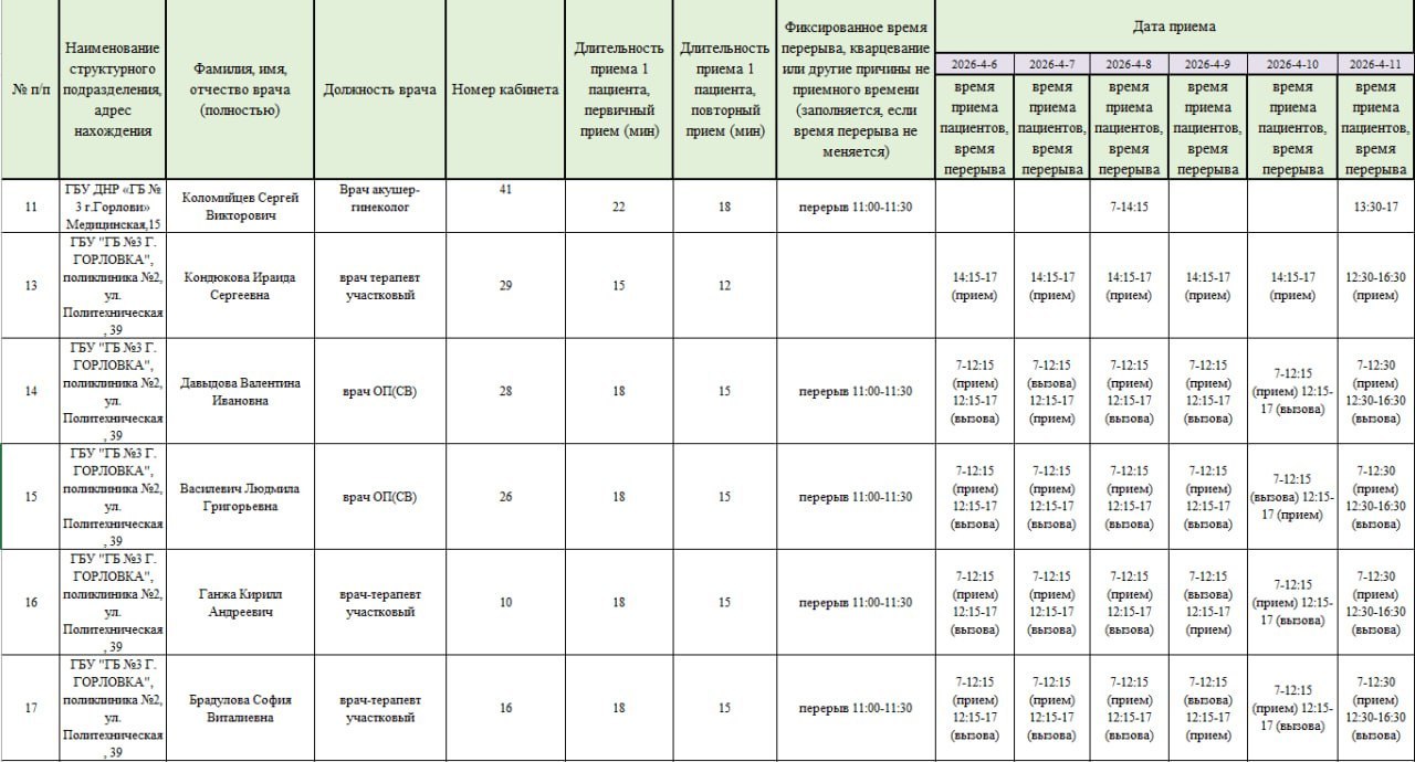 Иван Приходько: График работы специалистов ГБУ ДНР «Городская больница № 3 г. Горловки»