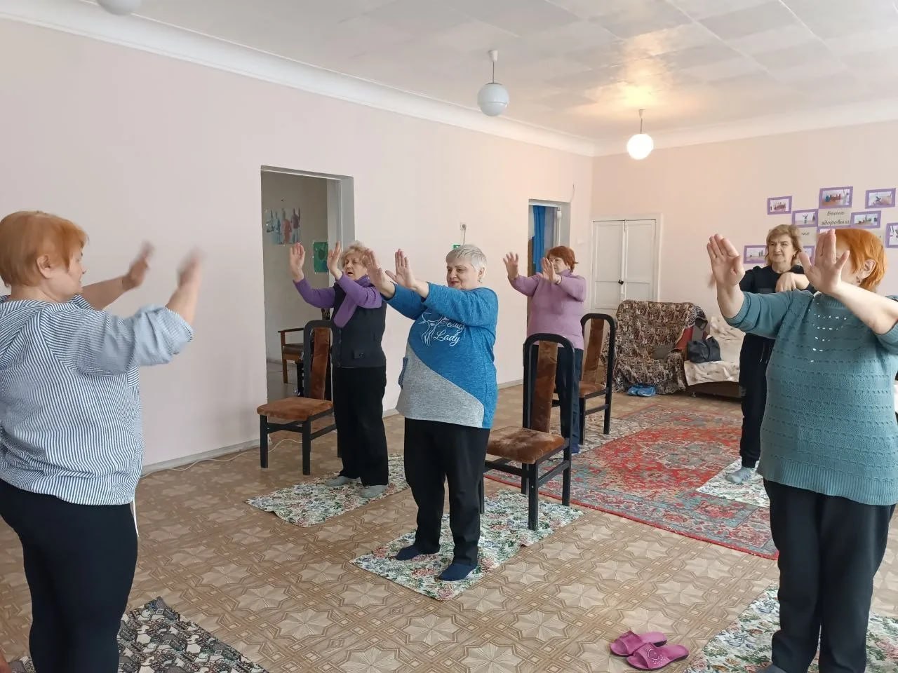 Участники с удовольствием выполняли комплекс упражнений, демонстрируя прекрасное настроение и стремление к здоровью. Особое внимание уделялось плавности движений, правильному дыханию и, конечно же, индивидуальному подходу к каждому подопечному.