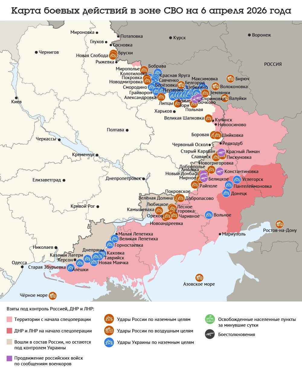 Карта боевых действий в зоне СВО на 6 апреля 2026 года