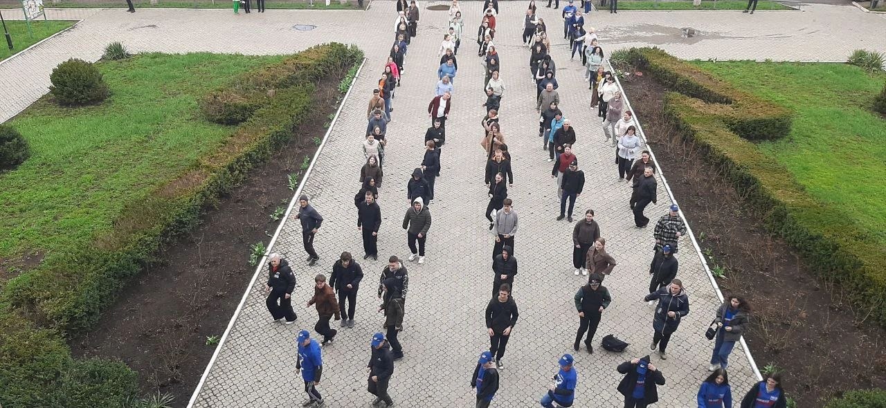 Работники муниципальных учреждений, обучающиеся старших классов ГБОУ «Володарской школы №1 им. Героя Советского Союза Д.А.Якименко Володарского МО» и жители пгт Володарское под музыку активно выполняли все упражнения под руководством учителя физической культуры ГБОУ «Володарской школы № 2 Володарского МО» Алены Александровны Вороновой.