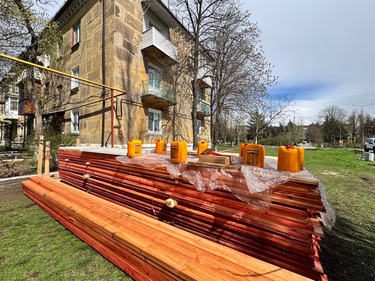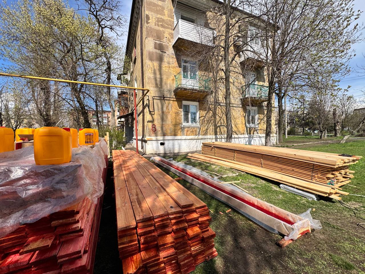 Так, для дома №14 по адресу квартал 26/34 завезены стройматериалы для следующего этапа работы.