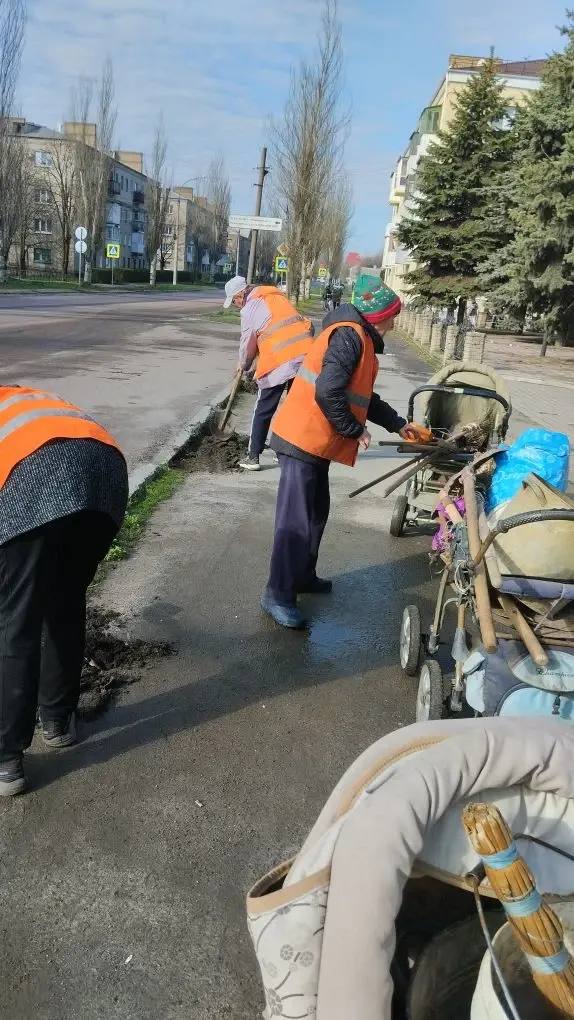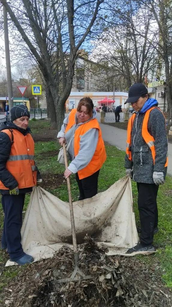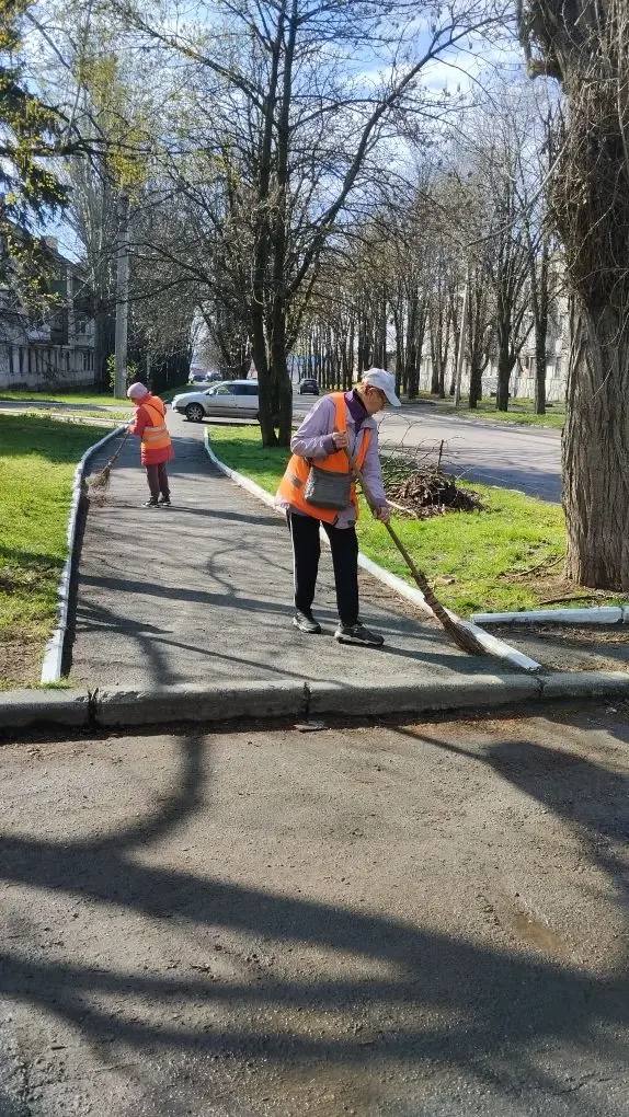 Сегодня работники Ясиноватского жилищно-эксплуатационного комбината традиционно наводили порядок на общественных территориях Ясиноватой.