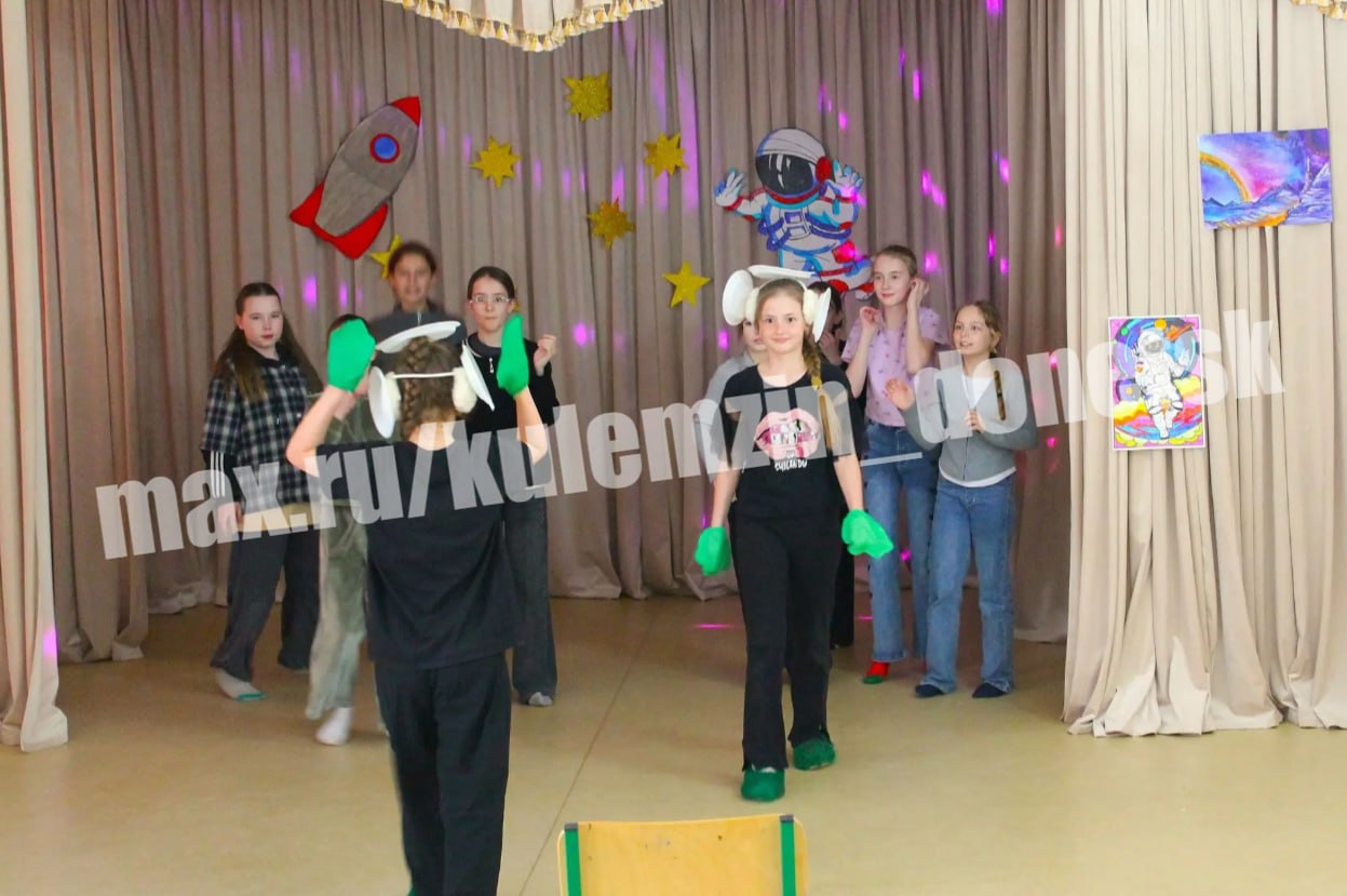 Гости с увлечением принимали участие во всех активностях, читали тематические стихи, отгадывали загадки и ребусы, создавали собственные «космические» рисунки и поделки. Праздник получился не только весёлым, но и познавательным – ведь космос всегда вдохновляет на открытия и новые свершения!