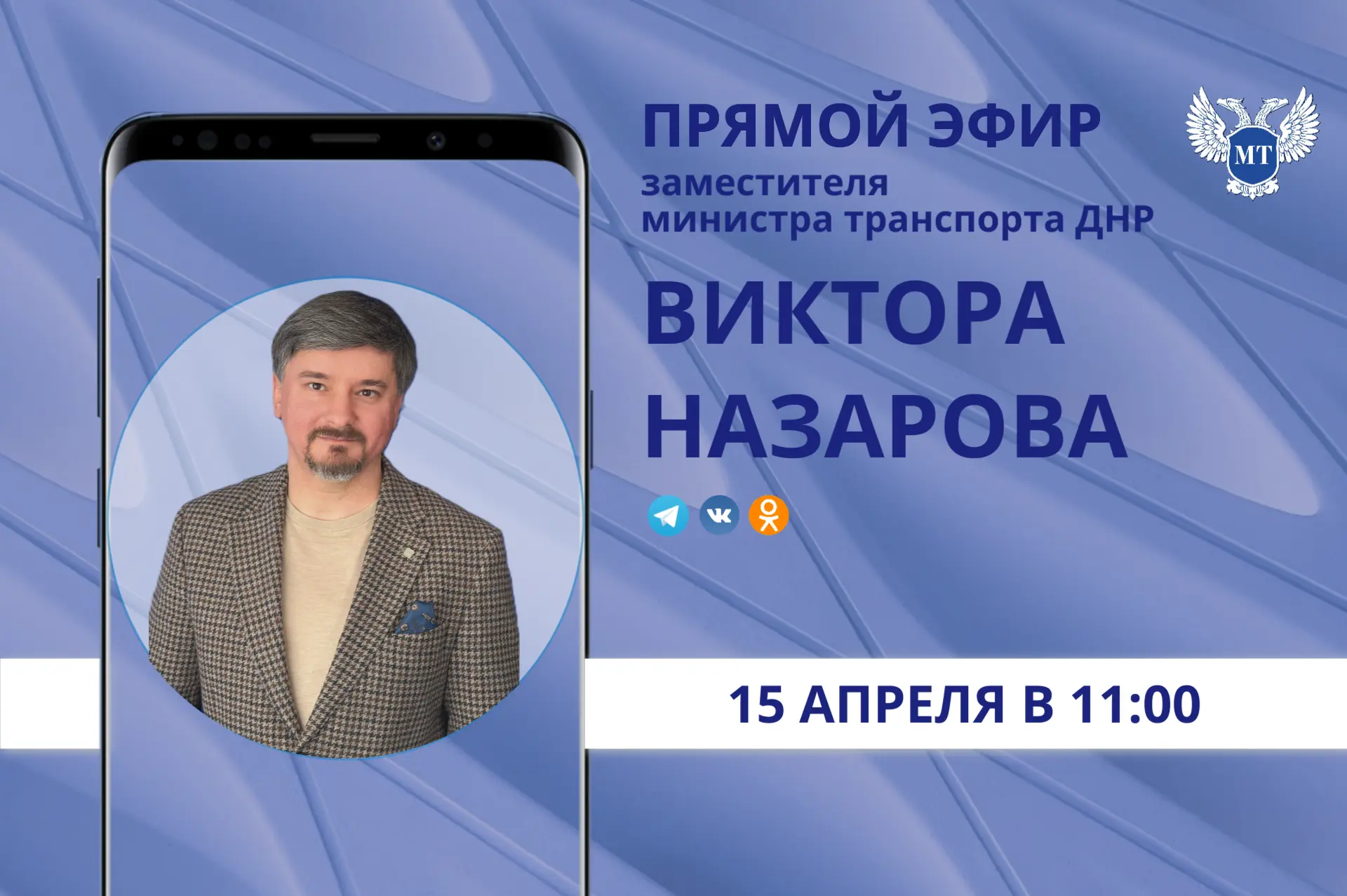 Напоминаем, что в среду, 15 апреля, в 11:00 по поручению Главы ДНР Дениса Пушилина состоится прямой эфир, который проведет заместитель министра транспорта ДНР Виктор Назаров.