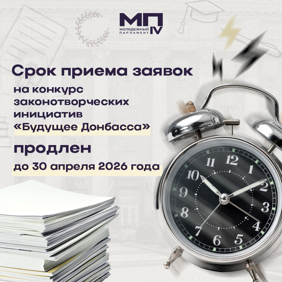 Теперь отправить свою работу на конкурс законотворческих инициатив «Будущее Донбасса» можно до 30 апреля 2026 года.