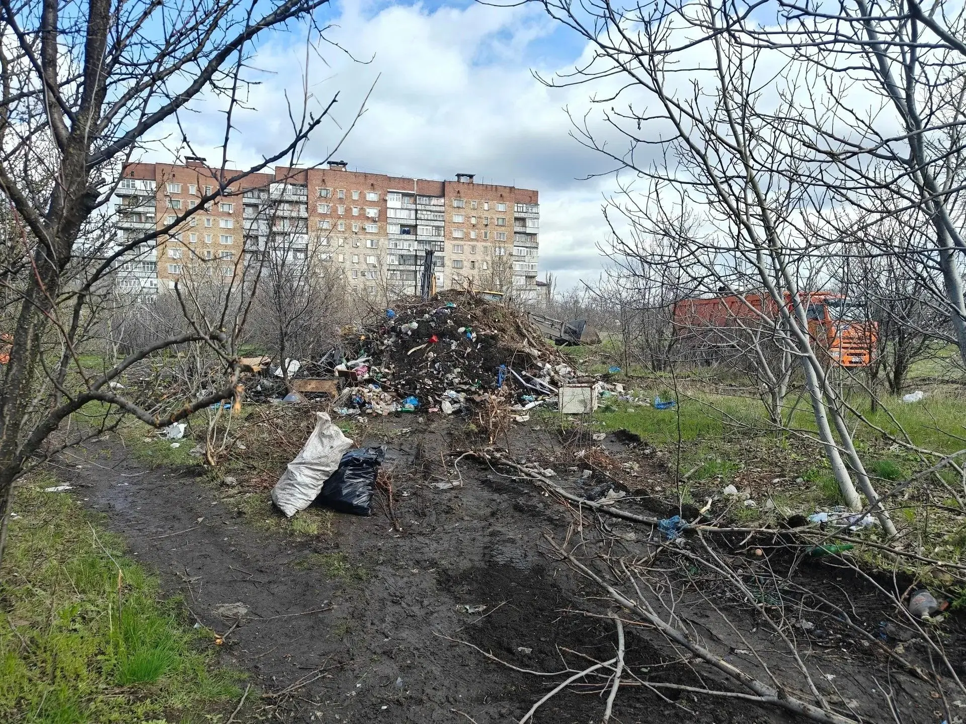 Ранее сотрудники коммунальных служб с активистами молодежного движения провели предварительную уборку участка: мусор и бытовые отходы были собраны и сформированы в кучи для последующей погрузки.