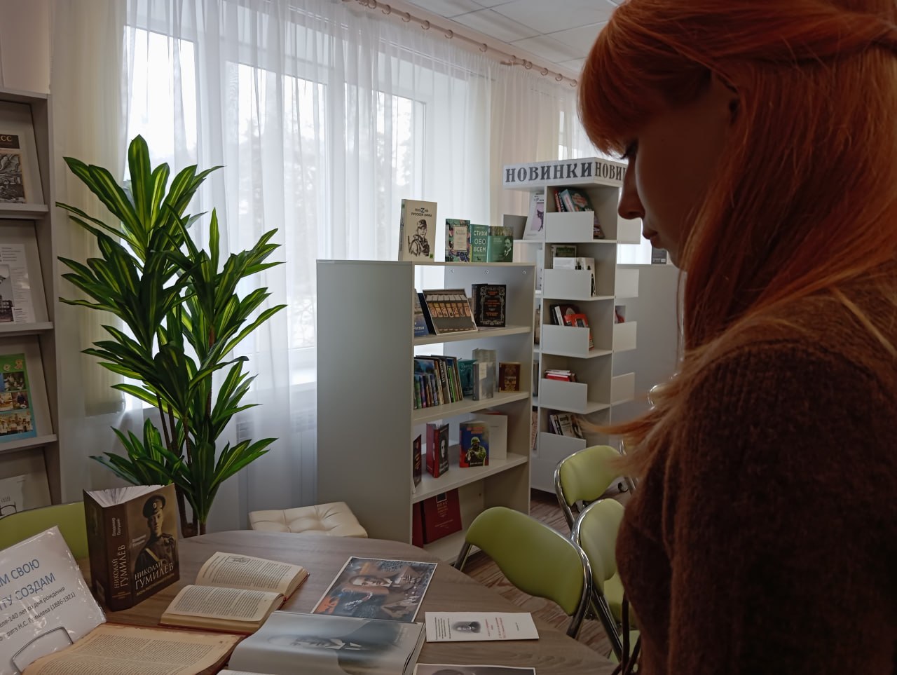 К этой дате в рамках работы Центра популяризации русского языка и культуры «Русское слово» в читальном зале центральной городской модельной библиотеки оформлена выставка-биография «Я сам свою мечту создам». Для пользователей представлена литература о его творчестве, путешествиях и трагической судьбе: А. Замостьянова «Русская литература», Е. Евтушенко «Поэт в России больше, чем поэт. Антология т.3», В. Полушина «Николай Гумилев. Жизнь расстрелянного поэта» и информационный буклет «Силуэт Серебряного века», составленный библиографом Нисенбаум С. Присутствующим библиотекарь рассказала, что Н.С. Гумилёв - единственный в России поэт, чьё творчество было запрещено более 70 лет и, тем не менее, оказало огромное влияние на развитие русской поэзии. Основатель поэтического течения акмеизм - Гумилёв сумел объединить талантливых молодых поэтов: Осипа Мандельштама, Анну Ахматову, Михаила Зенкевича и других. Они нарекли себя акмеистами от греческого слова «акмэ» — вершина. К новым вершинам они стремились всю жизнь — и в поэтическом ремесле, и в духовном и нравственном самосовершенствовании. Гумилёв оставил значительное наследие в русской литературе, его жизнь и работы продолжают изучаться и обсуждаться, а 140-летие со дня рождения — повод вспомнить о его вкладе в литературу и историю.