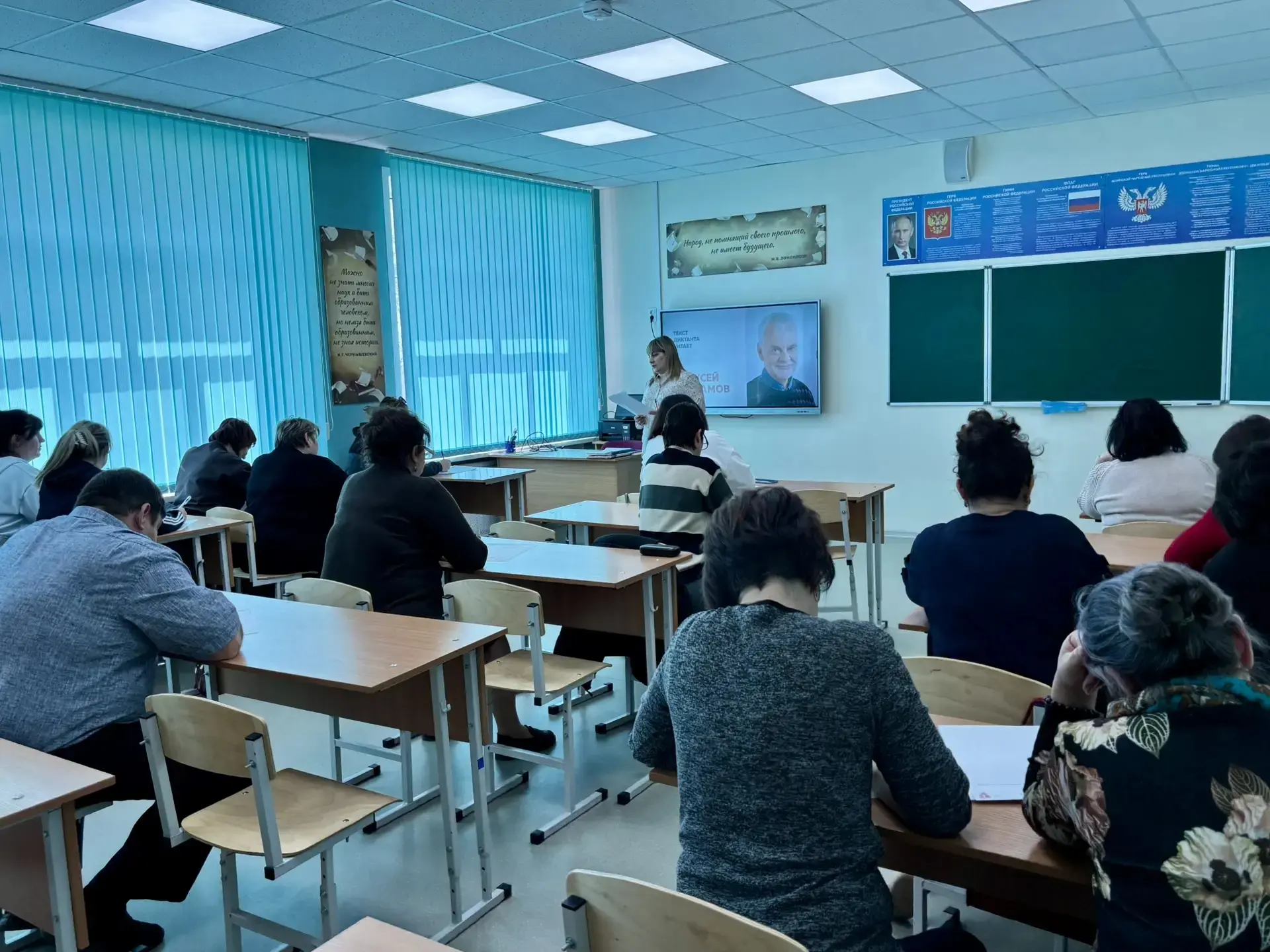 В классных комнатах Стародубовского УВК , Мангушской и Ялтинской школах N 1 собрались не просто участники , а соучастниками исторического момента. Здесь были учителя, работники школы, родители, обучающиеся. Никто не спешил. Никто не смотрел на часы. Только шелест бумаги, тихий стук ручек, глубокое молчание — и в нём слышалась уважительная тишина перед великим словом.
