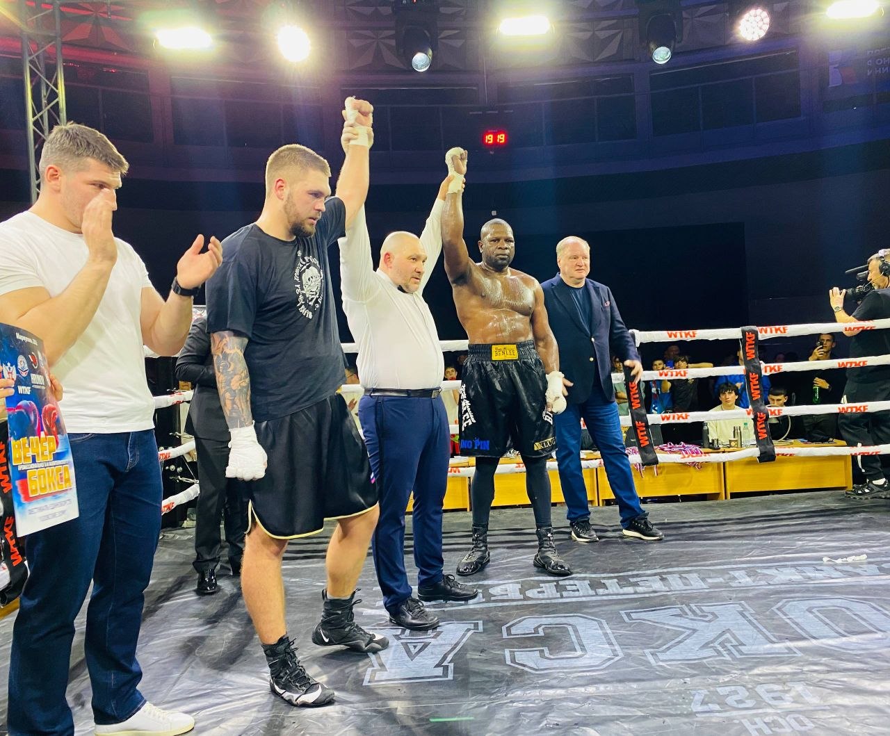 Главным событием вечера был бой профессионалов в супертяжёлом весе -