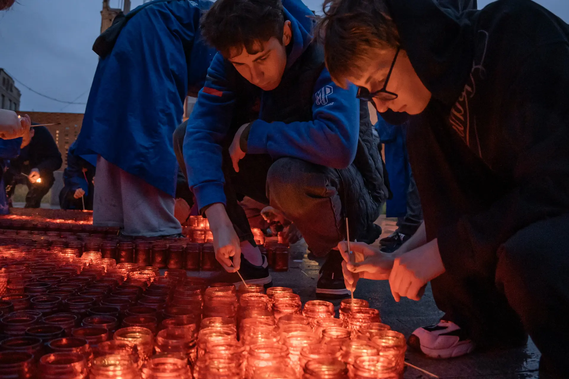 В этом году мы впервые отмечаем День памяти жертв геноцида советского народа, выложив у шурфа шахты «4/4-бис» из 4 тысяч свечей слово «Помним».