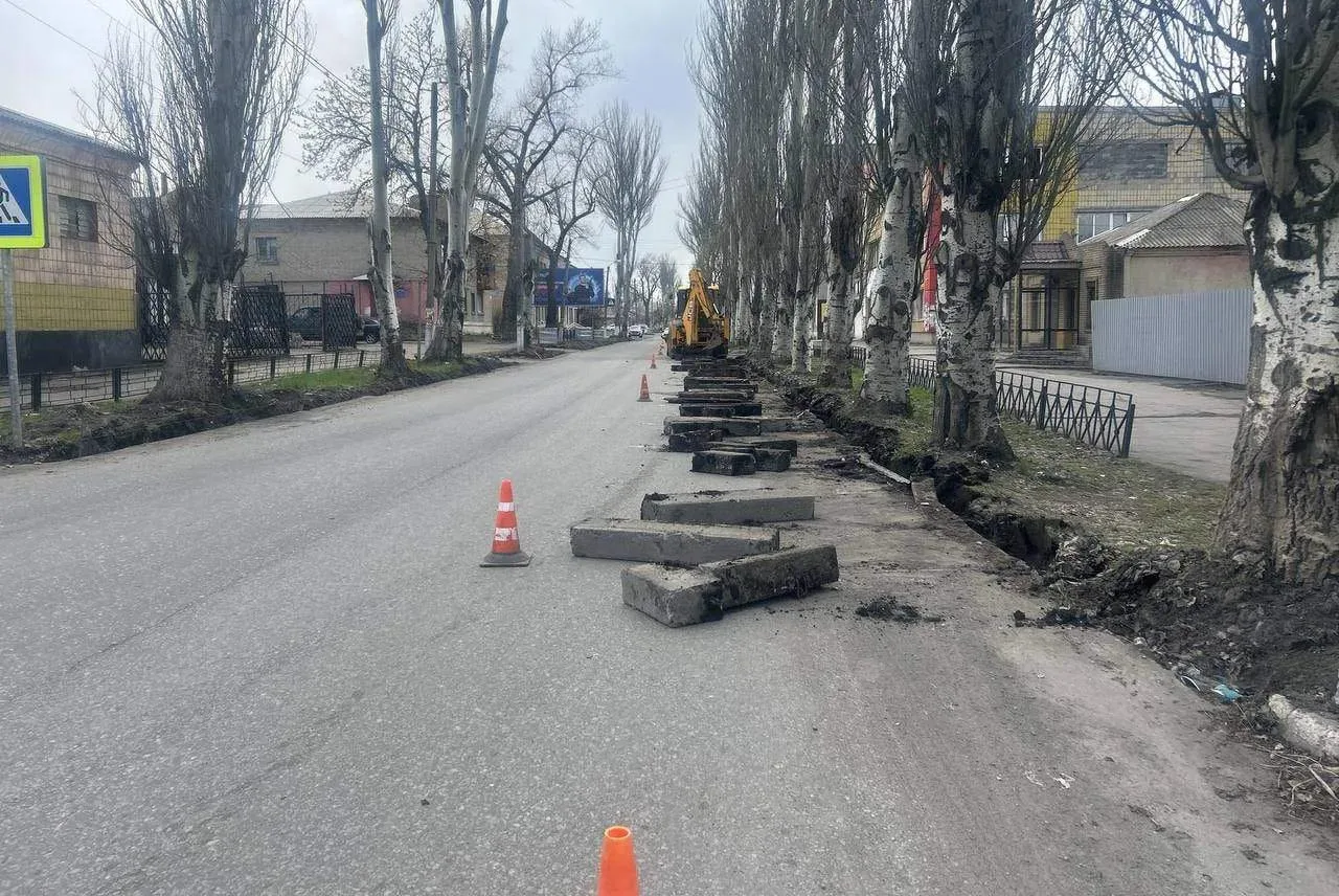 На данном этапе рабочие региона-шефа подготовили основание дороги — удалили старые бордюрные камни и подготовили траншею для создания правильного профиля дорожного полотна.
