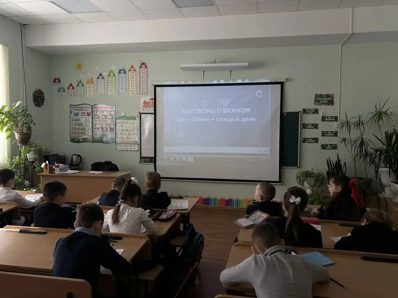 После линейки обучающиеся отправились на занятия «Разговоры о важном», тема которых сегодня «День земли- каждый день».