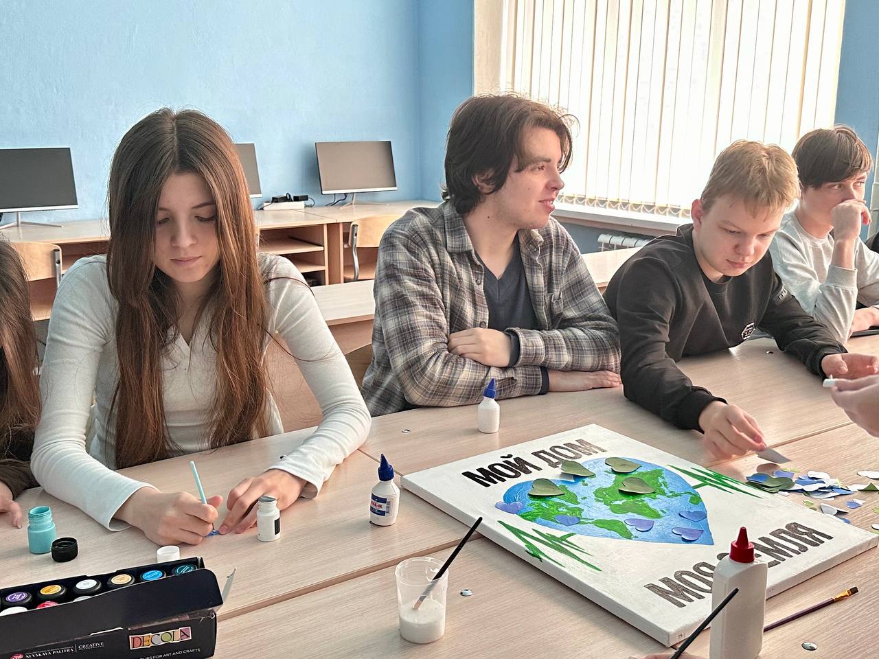 Ученики среднего звена донецкой школы 150 прикоснулись к понятию экологической культуры через небольшую лекцию и игру-погружение. После создали рисунок-символ — визуальный образ места, которое каждый из участников хочет сохранить.