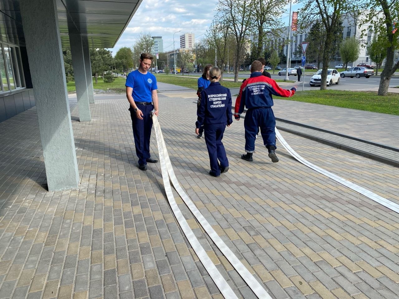 Их товарищи из Мариупольского местного отделения приняли участие в тренировке по пожарной безопасности, на которой практиковались в надевании боевой одежды пожарного и развертывании пожарных рукавов.