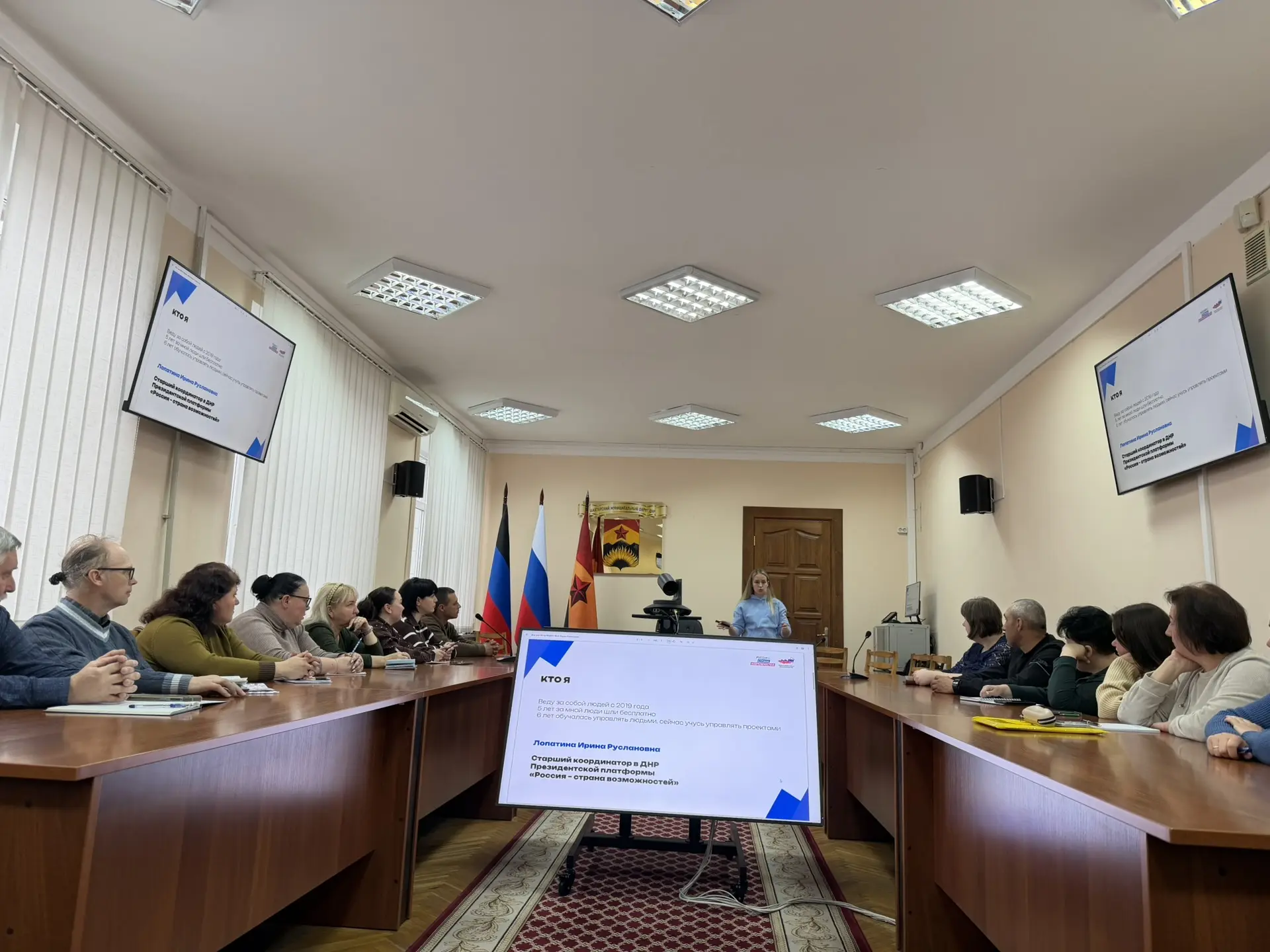 Сегодня, 21 апреля, в Шахтерском муниципальном округе состоялась лекция от Президентской платформы «Россия страна возможностей» на тему: Охота за головами: эффективные стратегии сбора и удержания команды, в которой приняли участие заведующий сектором внутренней политики и информационного обеспечения - Виктория Пушкина, председатель ТОС "НОВЫЕ ДОМА" - Надежда Бушуева, председатель ТОС "Зелёное" - Анна Баранова.