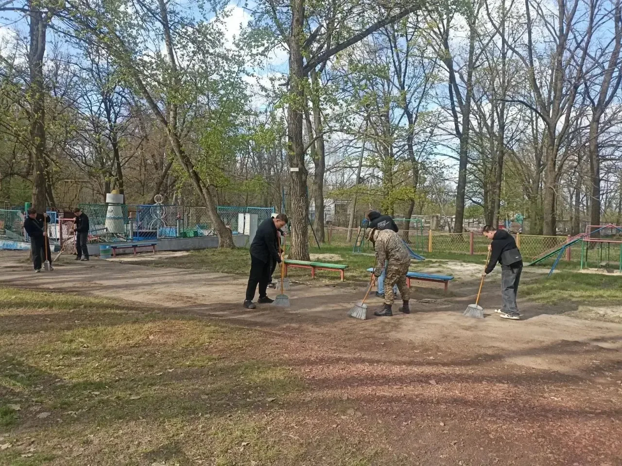 Собрали мусор, подмели дорожки, очистили территорию от листвы и веток.
