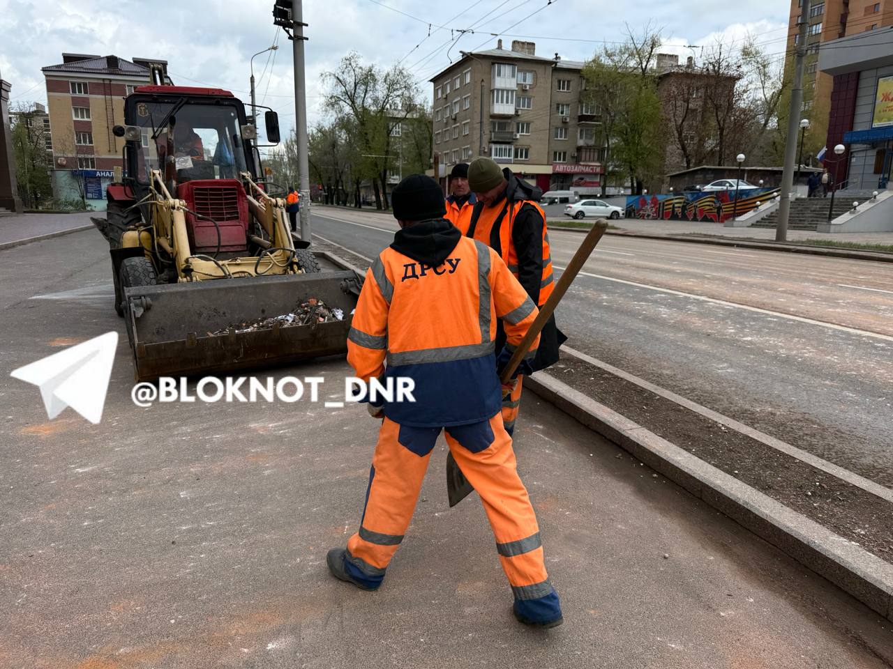 Напомним, сегодня утром ВСУ нанесли массированный удар по центру Донецка. Не смотря на опасность повторных атак, работники ДРСУ оперативно расчистили от обломков одну из центральных улиц города.