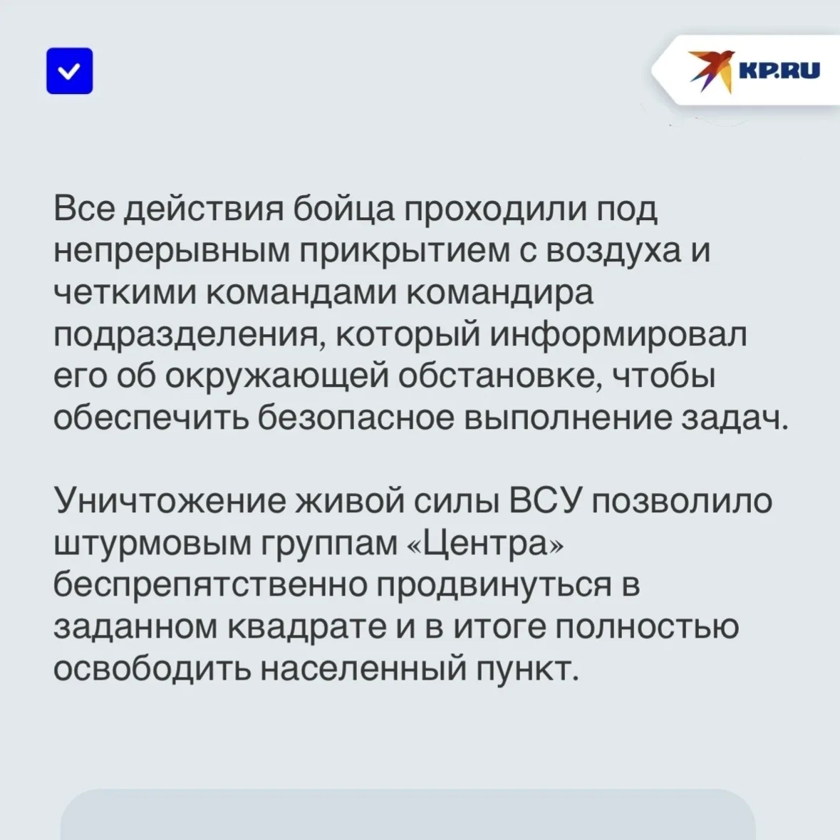 В ходе штурма один из российских военнослужащих в одиночку ликвидировал несколько позиций с живой силой украинских боевиков.
