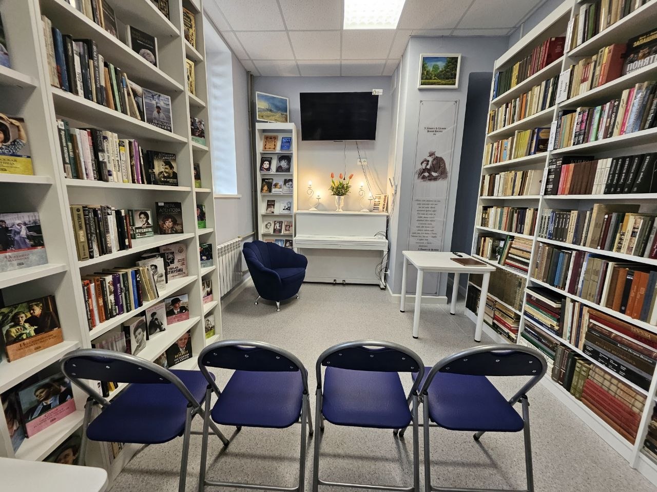 Особенно порадовало внутреннее убранство библиотеки. Благодаря нацпроекту "Культура" в 2025 году здесь был проведён капитальный ремонт. Теперь посетителей радует новое мультимедийное оборудование и зоны для творчества.