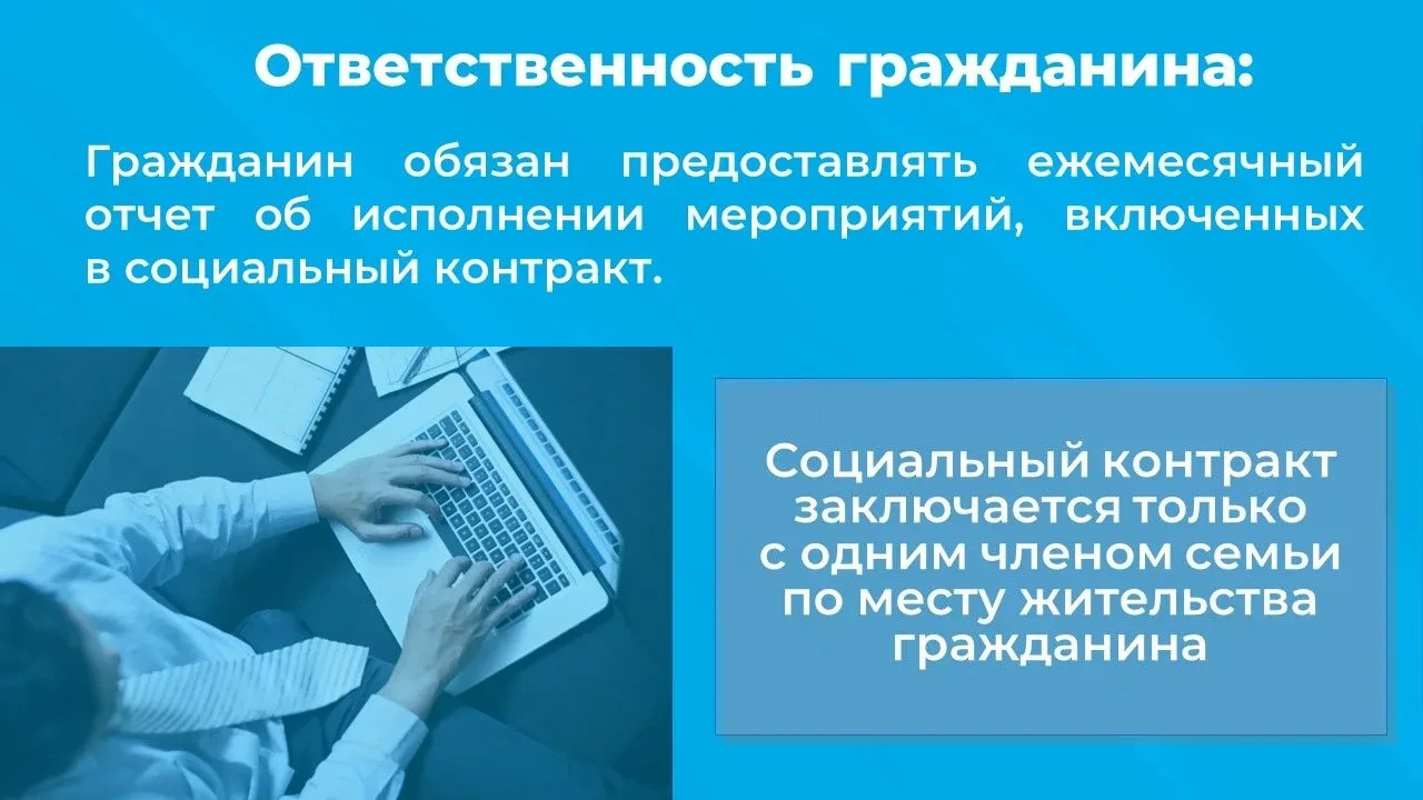 В продолжение темы расскажу еще об одном направлении социального контракта – поддержка граждан в открытии и ведении индивидуальной предпринимательской деятельности.