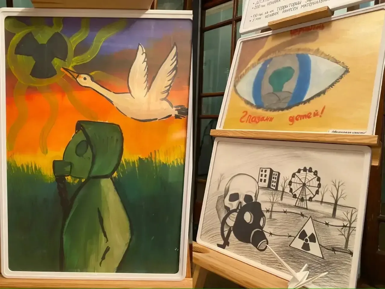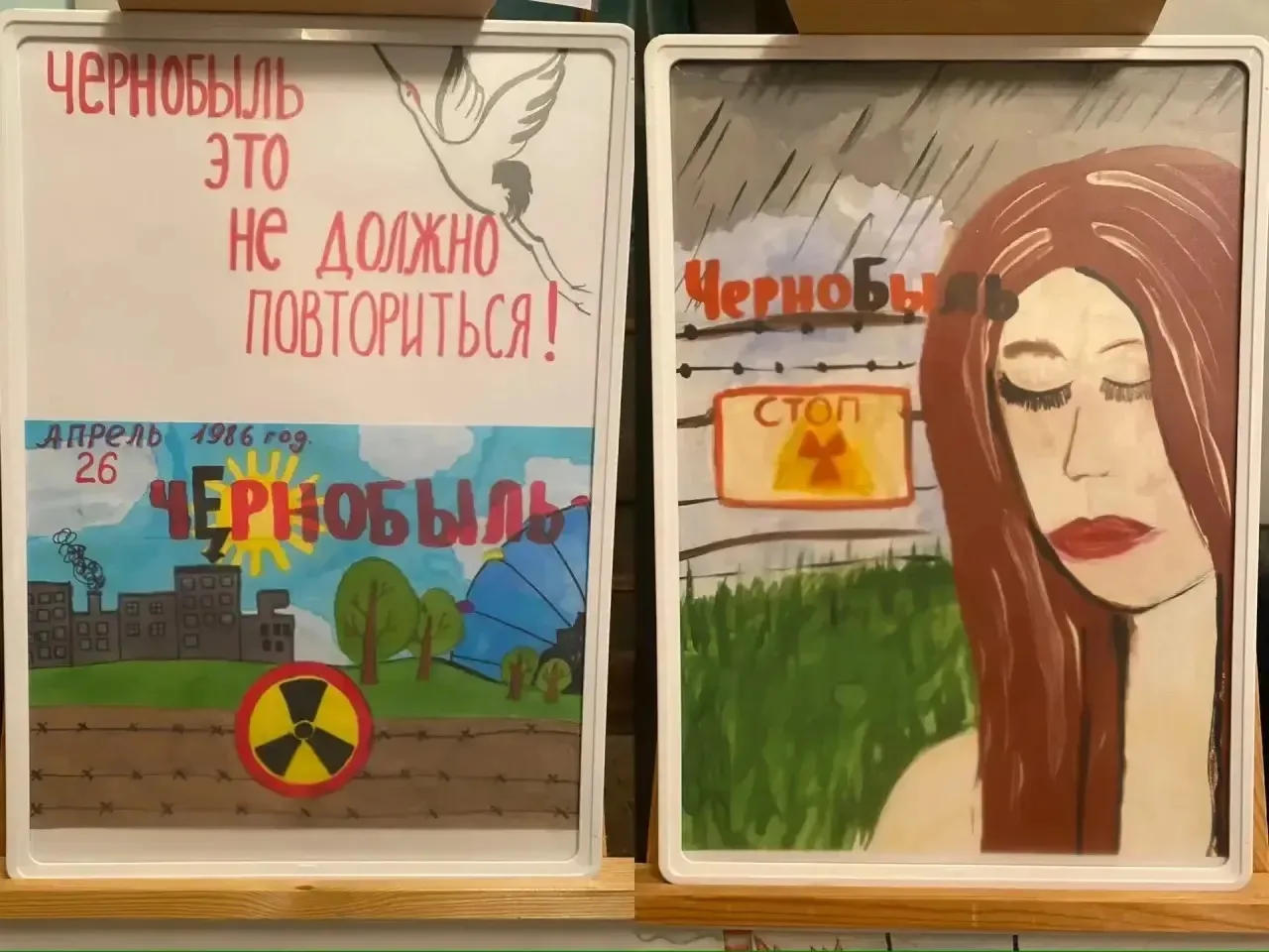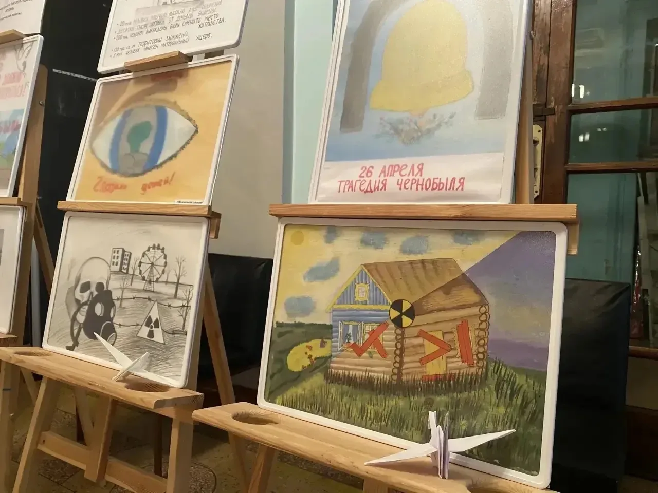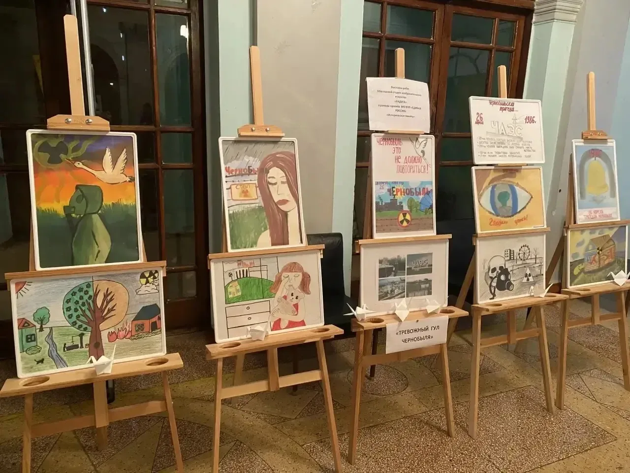 25 апреля в Зугрэсском городском Дворце культуры, в рамках проекта Единая Россия «Историческая память», открылась трогательная и глубокая выставка под названием «Тревожный гул Чернобыля», подготовленная юными художниками образцовой студии изобразительного искусства «Радуга».