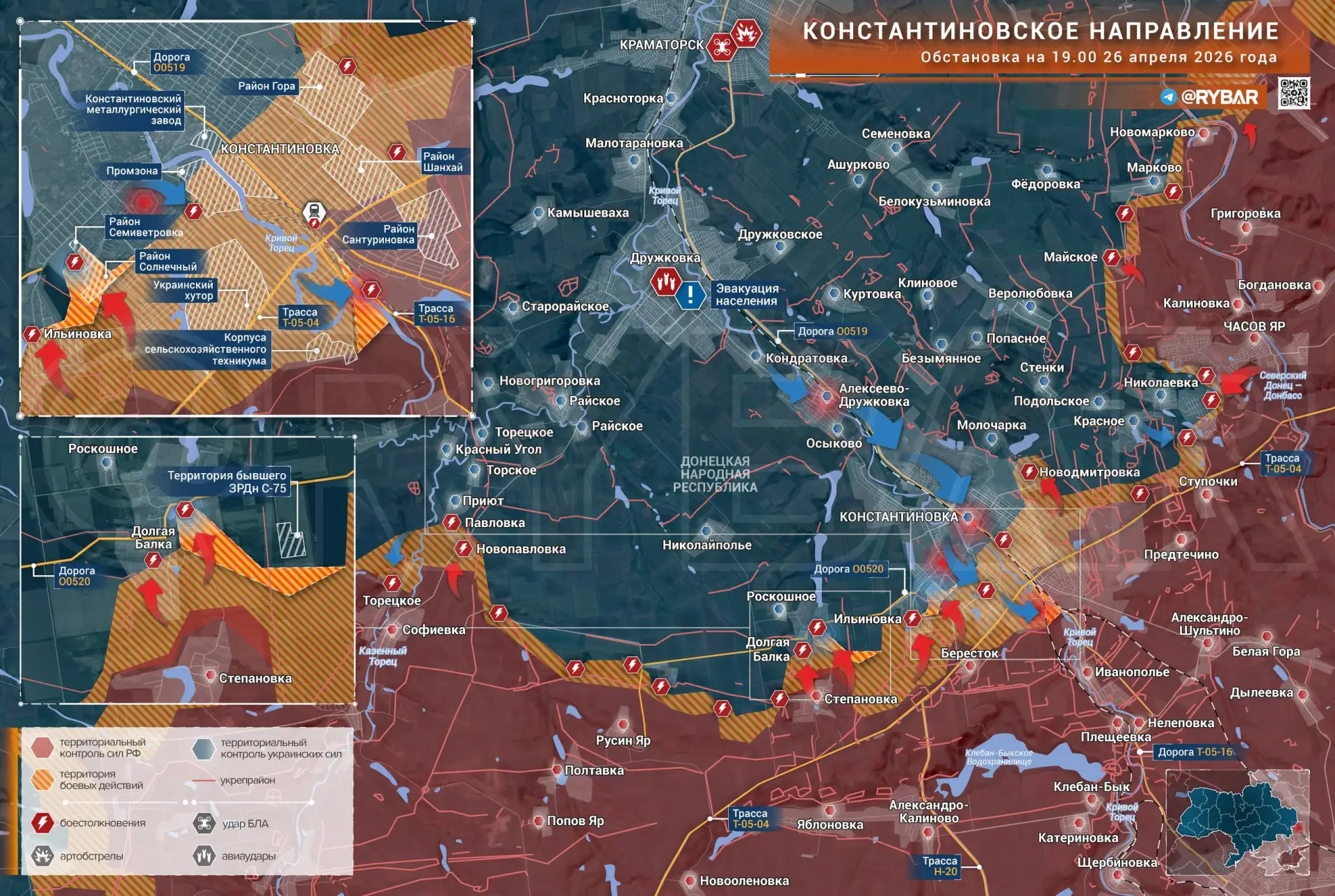 По сложившейся конфигурации фронта можно ожидать, что основные ресурсы ВС РФ будут направлены на наступление на западном фланге направления. Освобождение Долгой Балки и Ильиновки откроет им дорогу на Алексеево-Дружковку, через которую проходят основные маршруты снабжения группировки ВСУ как в самой Константиновке, так и Часовом Яре.