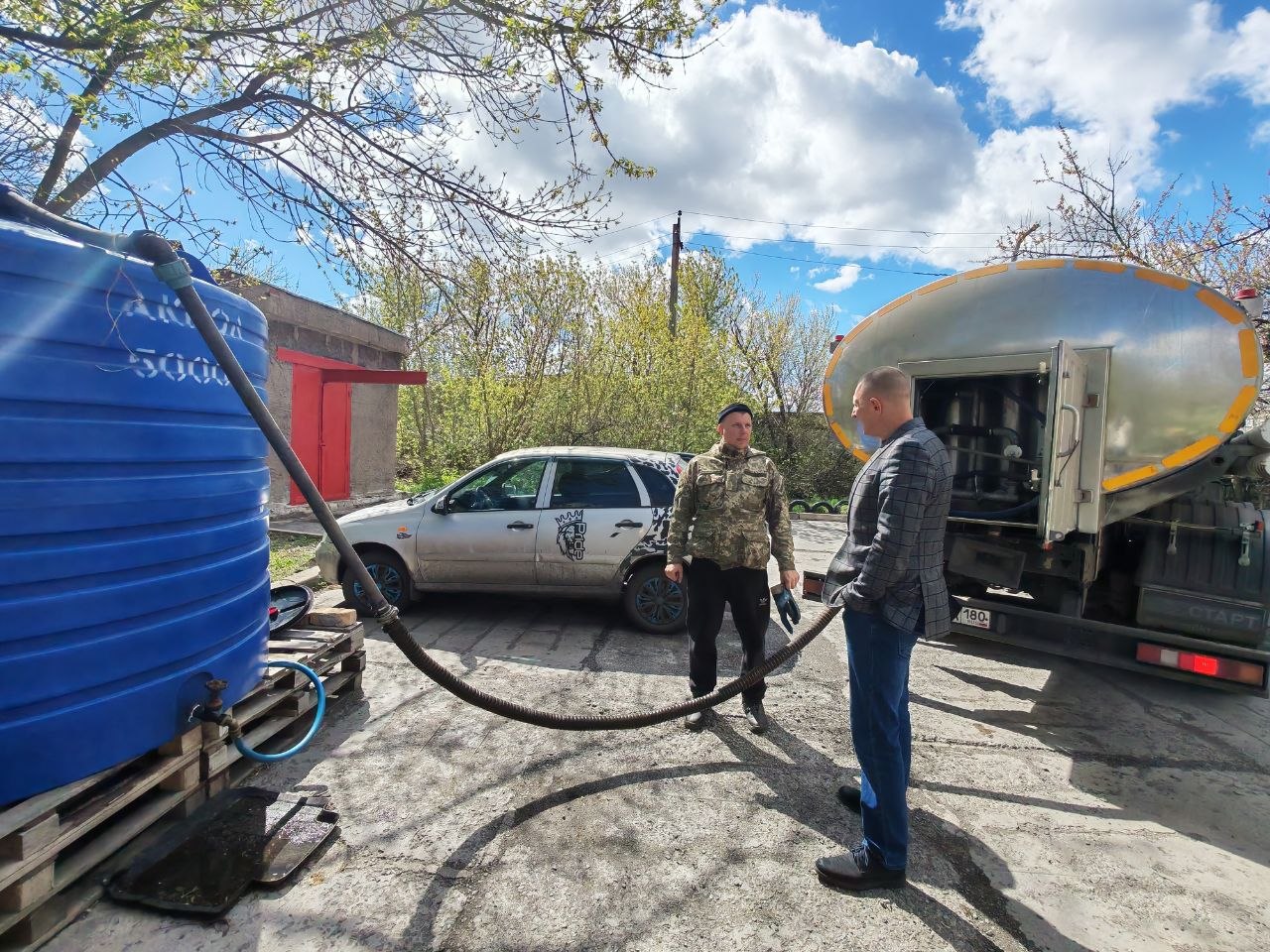 Депутат Торезского городского совета Иван Масленников проконтролировал подвоз воды в ранее установленную емкость по ул. Кировоградская.