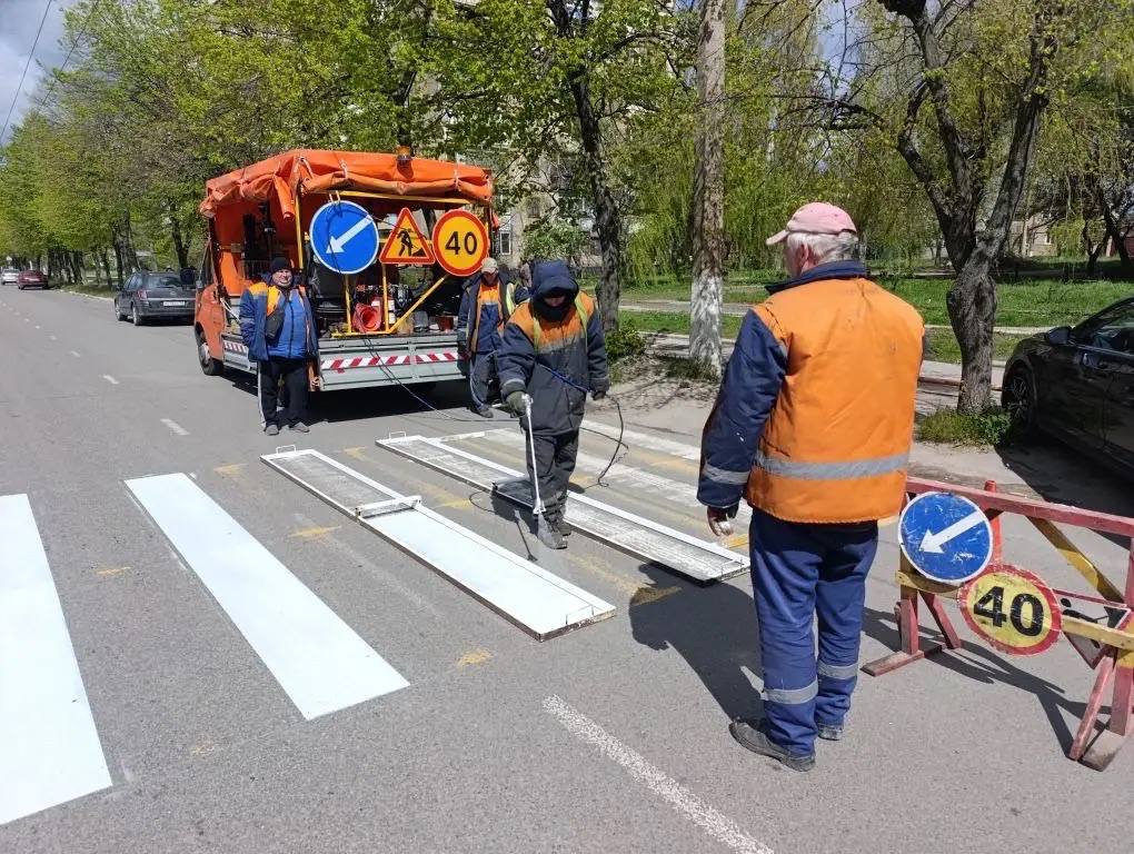- окраска пешеходных переходов по пр. Победы;