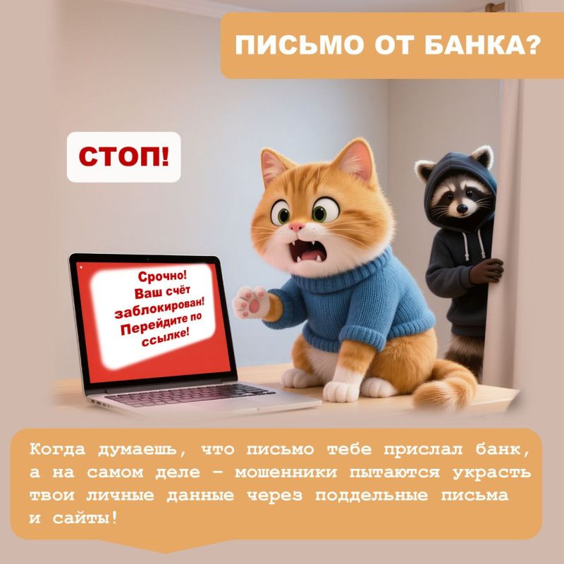 Кибермошенники атакуют ежедневно — через письма в почте, сообщения, фальшивые уведомления и «выгодные» предложения.Собрали в карточках пять типичных ловушек и напоминаем, как в них не угодить:Никогда не переходите по ссылкам в письмах или SMS от якобы...