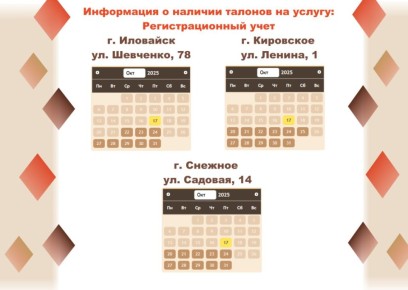 Информацию о доступных талонах на получение необходимых услуг в отделениях МФЦ можно найти в карточкахПеред посещением МФЦ проверьте наличие свободных талонов на Портале ГБУ "МФЦ ДНР".