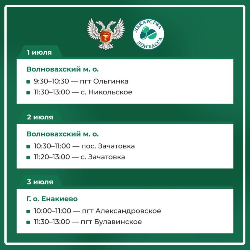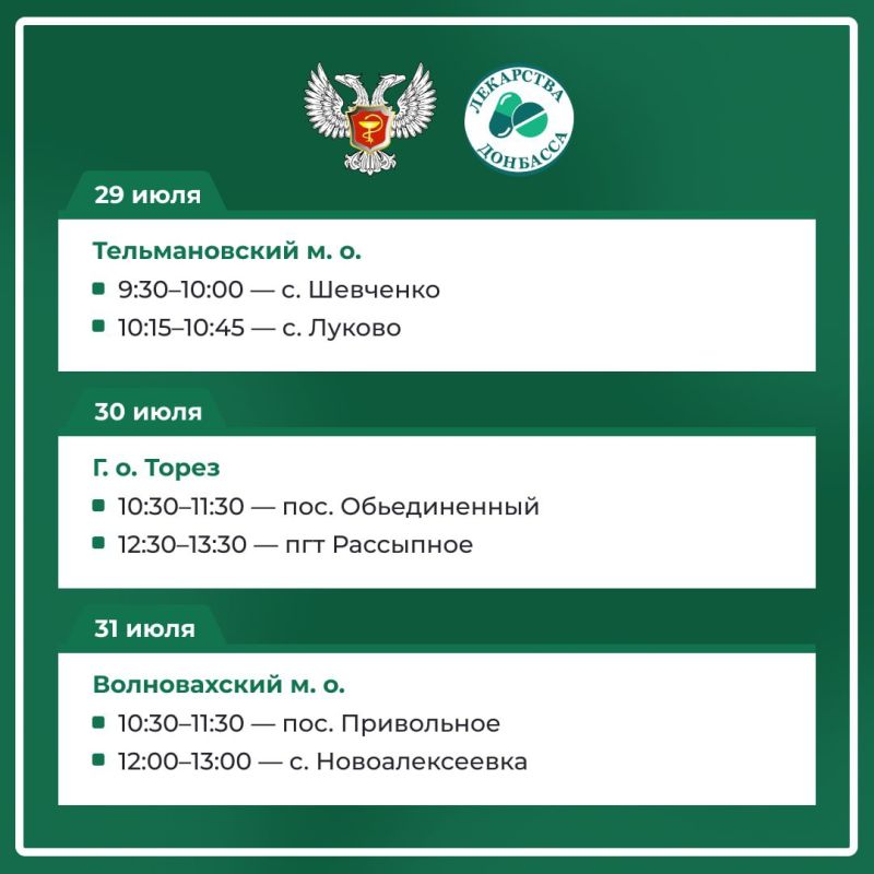 График работы выездной аптеки на июль – в карточках Минздрава ДНР