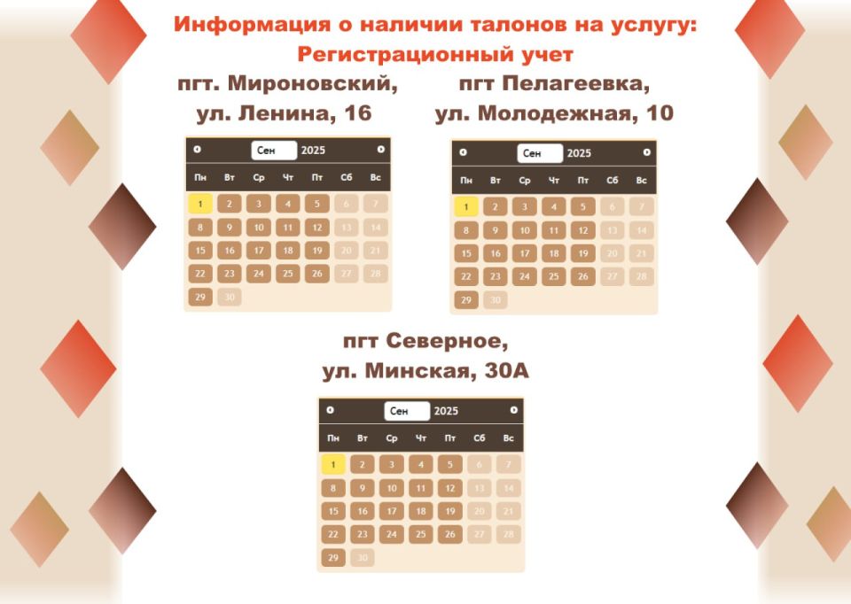 Информацию о доступных талонах на получение необходимых услуг в отделениях можно найти в карточках