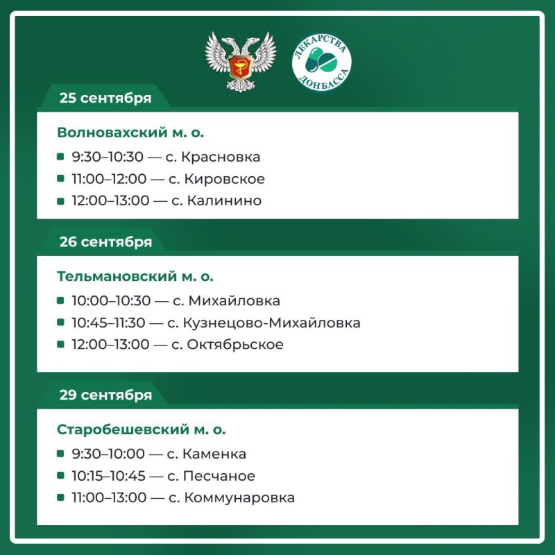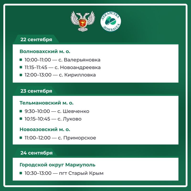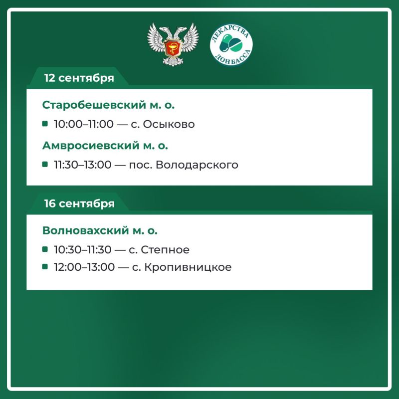 График работы автоаптеки на сентябрь — в карточках Минздрава ДНР