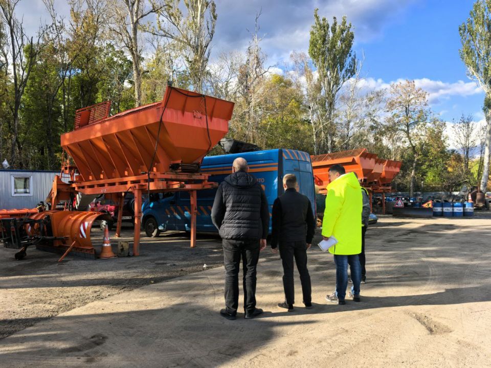 Готовность к работе отрасли в зимних условиях проверили министр транспорта Александр Бондаренко, руководитель Службы автомобильных дорог Донбасса Денис Тюрин и финалист кадрового конкурса «Донбасс. СВОи Герои» Антон Ботнарев.