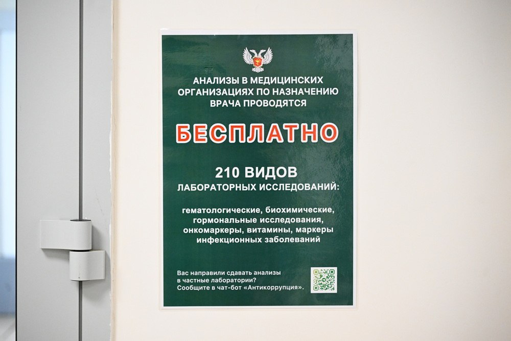 Напомню, при поддержке Президента России Владимира Путина в ДНР мы сформировали единую систему лабораторных исследований. Она объединяет семь централизованных клинико-диагностических лабораторий в Макеевке, Горловке, Енакиево, Харцызске, Мариуполе и два центра в Донецке. В них жители региона могут бесплатно сдать 210 видов анализов по назначению врача.