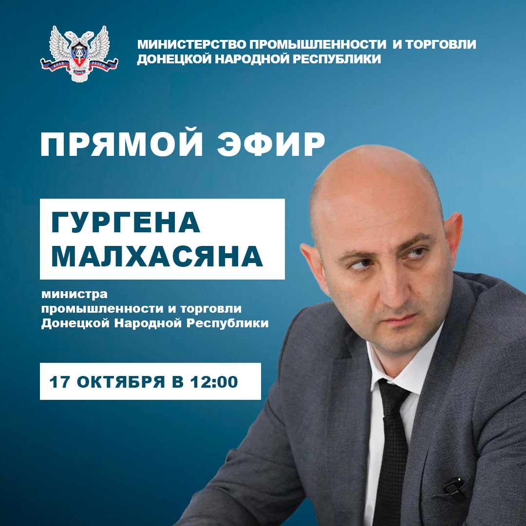 Сегодня в 12:00 министр промышленности и торговли ДНР Гурген Малхасян проведет прямой эфир