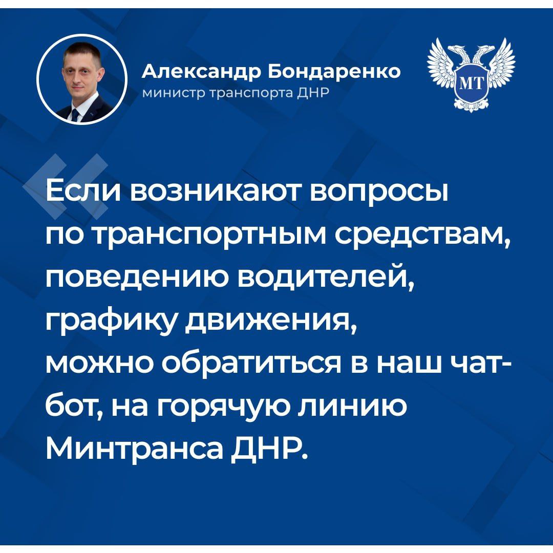 Министр транспорта ДНР Александр Бондаренко провел прямой эфир