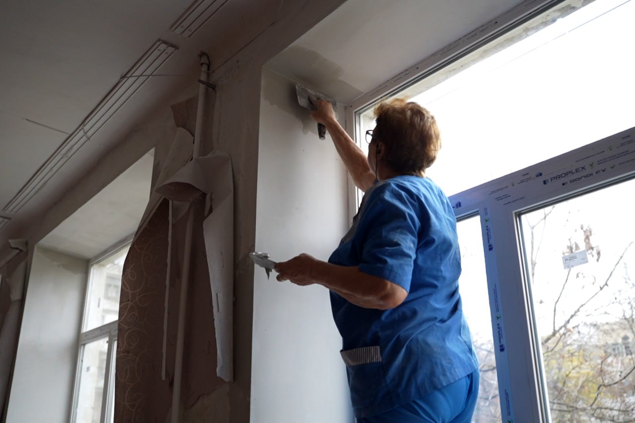 Уже заменили 69 оконных блоков, отремонтировали кровлю. Сейчас продолжаем внутренние работы и завершаем ремонт крыши второго корпуса.