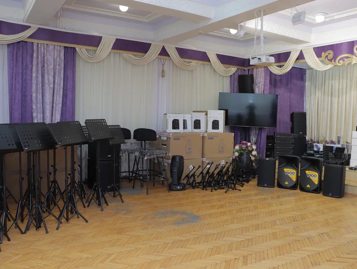 Закупили микрофоны и стойки для них, инструментальные и вокальные радиосистемы, планшеты, цифровые микшерные и дирижерский пульты, световое оборудование, прожекторы, оркестровую мебель, акустические системы и сабвуферы.