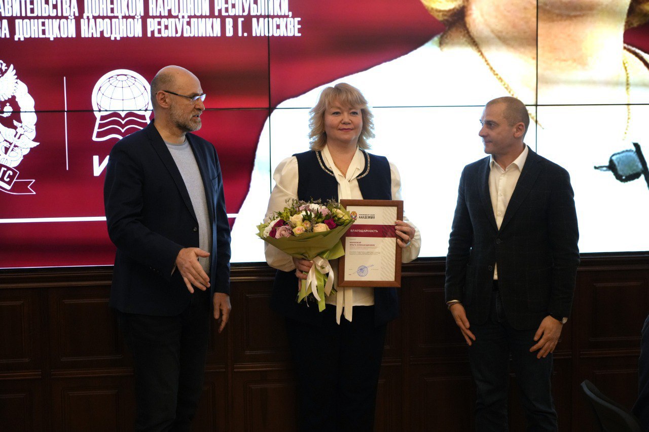 От имени ректора Президентской академии за активное сотрудничество и эффективную совместную работу в сфере образования Ольге Макеевой вручили благодарность.