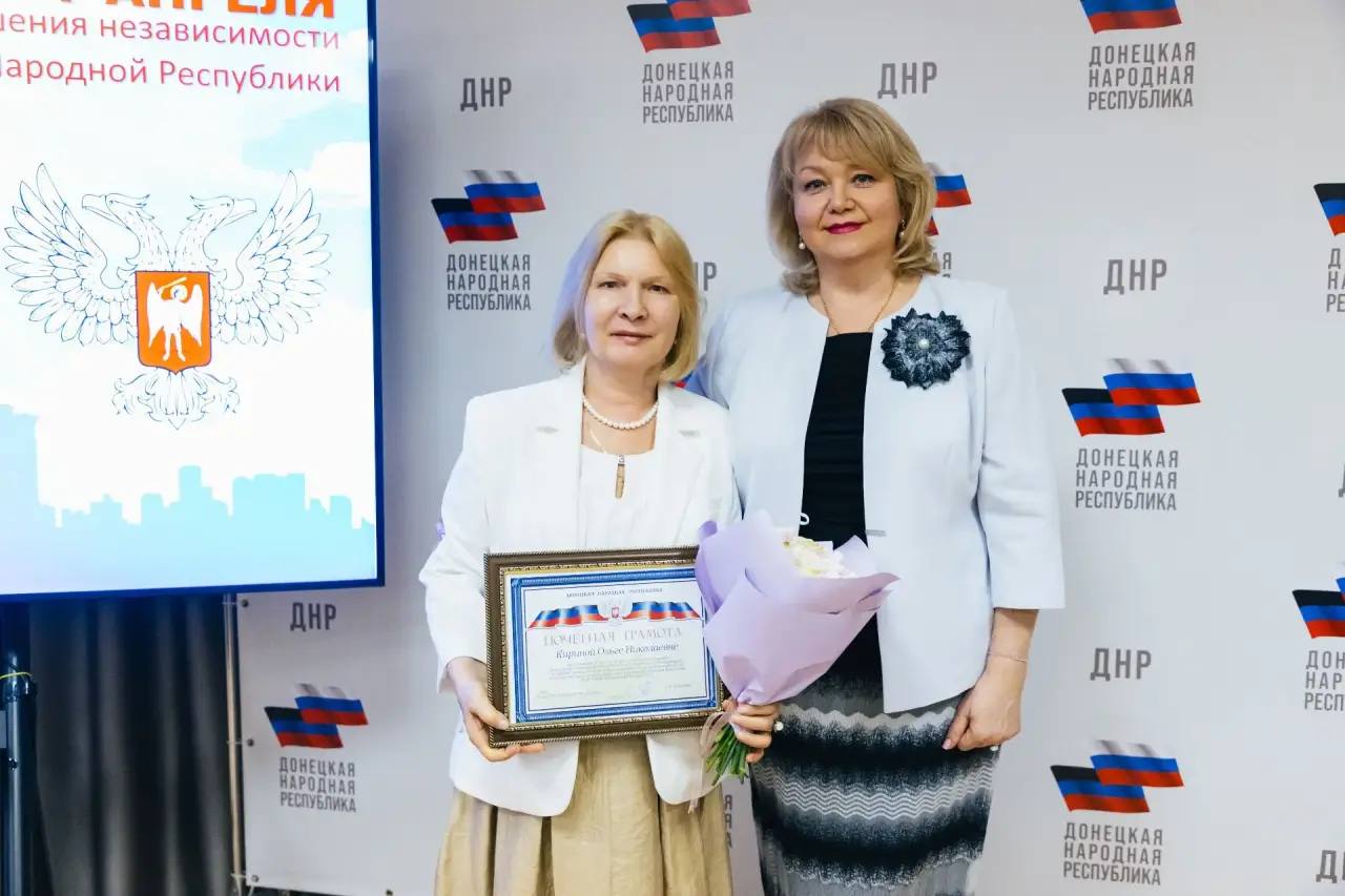 Вице-премьер Ольга Макеева по поручению Главы ДНР вручила награды тем, кто долгие годы помогает Республике.