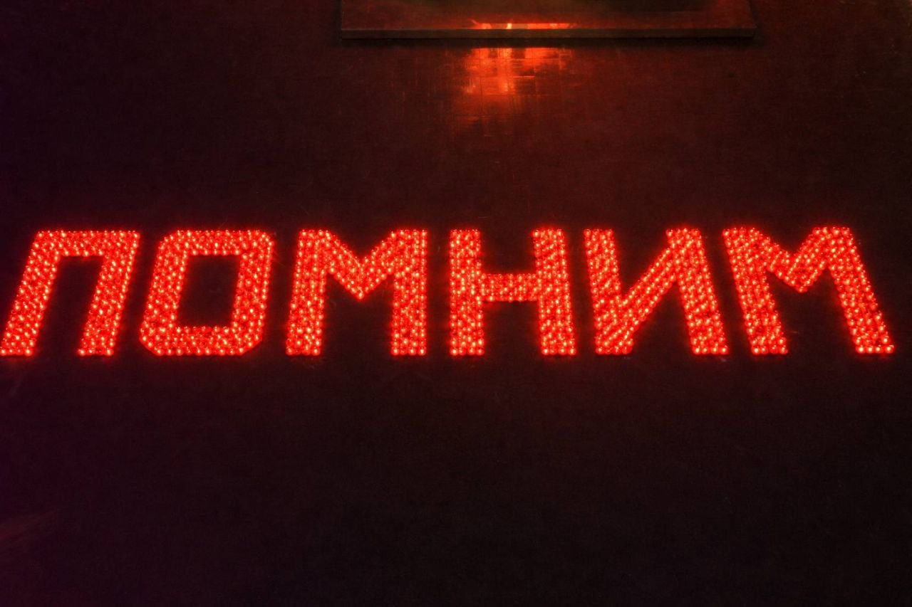 В память о жертвах геноцида советского народа у шурфа шахты «4/4-бис» из 4 тысяч свечей выложили слово «Помним».
