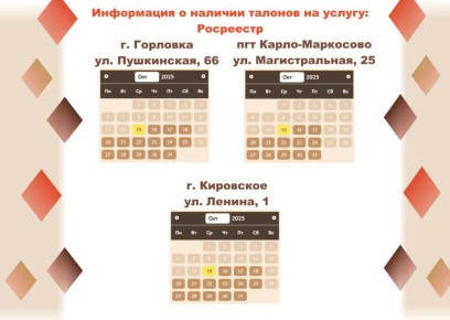 Информацию о доступных талонах на получение необходимых услуг в отделениях МФЦ можно найти в карточкахПеред посещением МФЦ проверьте наличие свободных талонов на Портале ГБУ "МФЦ ДНР".