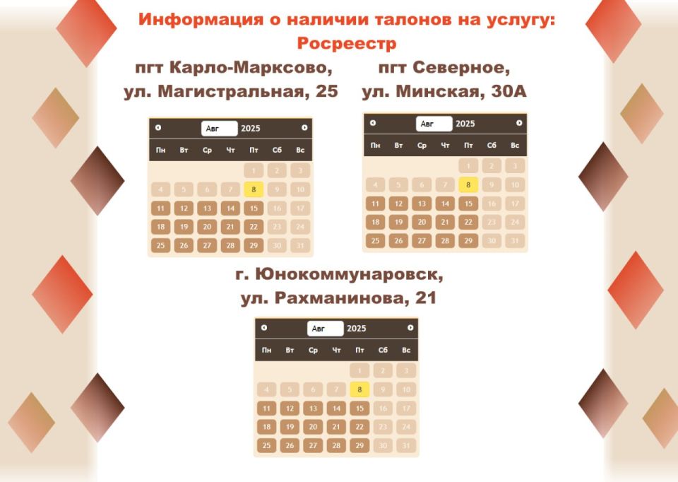 Отделения МФЦ, где сейчас есть свободные талоны на получение необходимых вам услуг смотрите в карточкахПеред посещением МФЦ проверьте наличие свободных талонов...