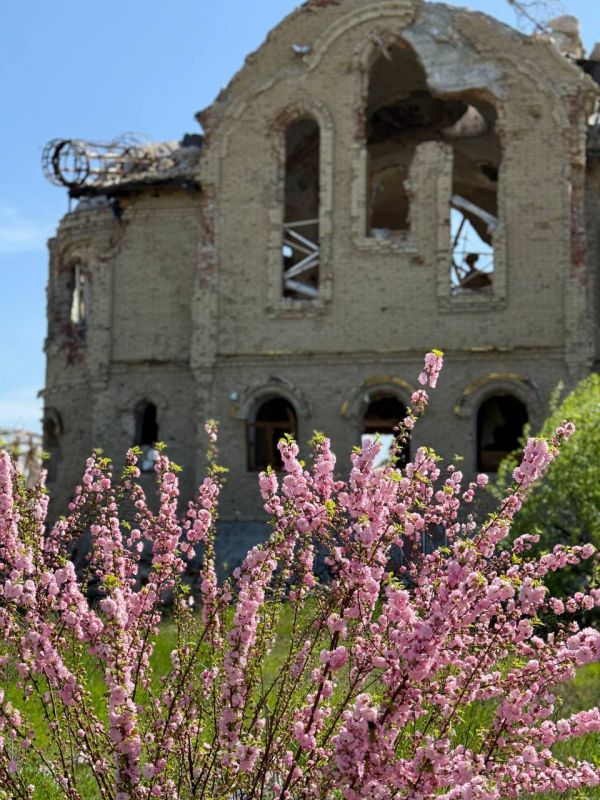 Сейчас фронт ушел далеко за Курахово и природа быстро забирает свое. Зеленое полотно закрывает воронки от снарядов, прячет лепестки и колокольчики, тюльпаны красят ярким цветом огороды и клумбы, а фронтовые котики и собачки заселяют руины на правах полноправных хозяев. Вокруг непривычная тишина, и лишь рваный металл да шифер хлопает да скрипит на ветру.