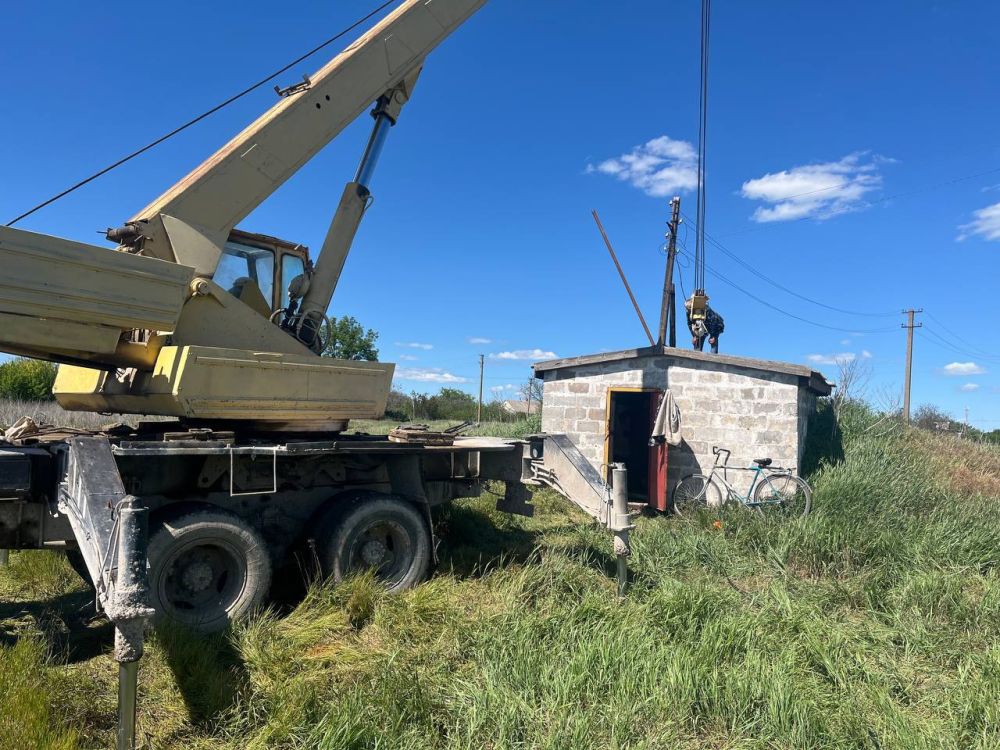 Благодаря предоставленному насосу для скважины, силами администрации Волновахского округа была осуществлена установка оборудования, и в настоящее время продолжается наладка автоматики.