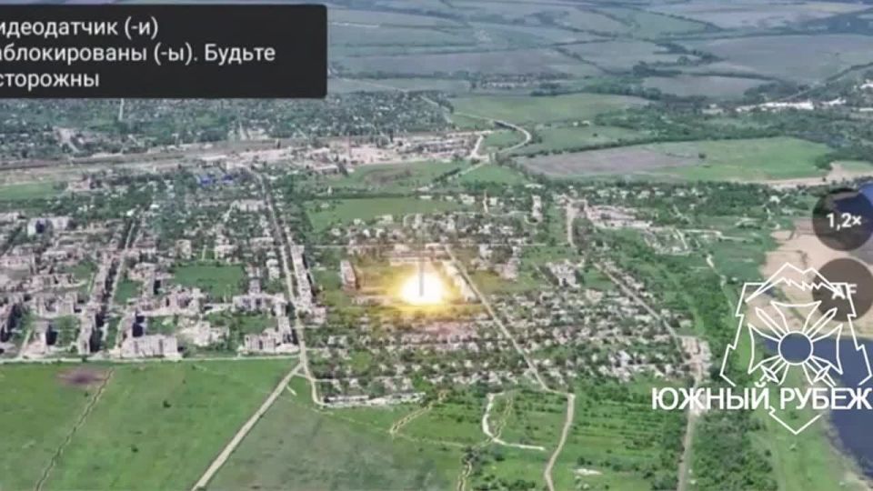Российские лётчики с помощью, предположительно, объёмно-детонирующей авиабомбы ОДАБ-1500 с УМПК уничтожили место дислокации л. с. 81-й АМБр ВСУ в н. п. Северск. Кадры показал Telegram-канал "Южный рубеж".