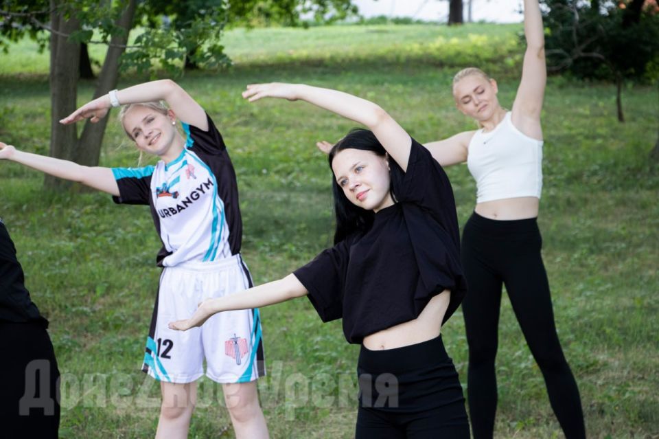Каждую неделю в столице ДНР "Народная дружина" проводит тренировки по пилатесу на открытом воздухе. На одной из них побывал корреспондент "Донецкого времени".